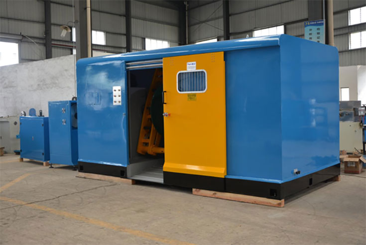 4、成纜主機護罩全封閉式,內部采用多孔網板,內采用鑲嵌消音棉,有效降低了設備運行時產生的噪音;
